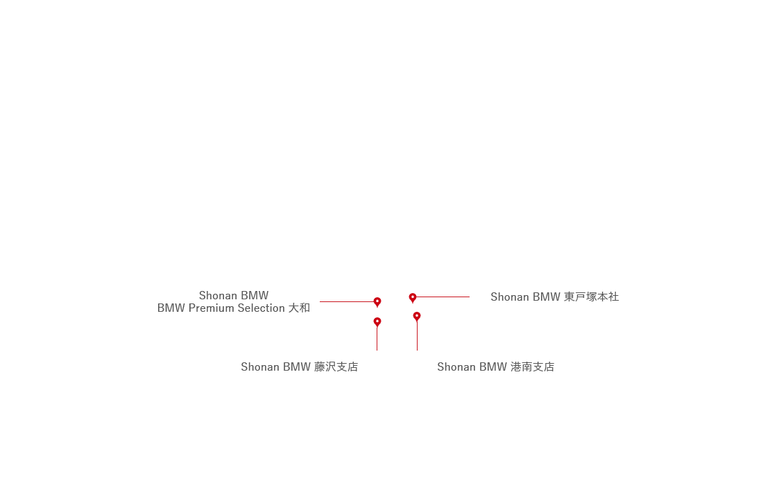 株式会社モトーレン湘南 本社(オフィス) 〒251-0044 神奈川県藤沢市辻堂太平台 2-10-6 0466-33-1002 MAP Shonan BMW 藤沢本社 〒251-0044 神奈川県藤沢市辻堂太平台 2-10-6 0466-30-5007 MAP SHOP INFO Shonan BMW 東戸塚支店 〒244-0805 神奈川県横浜市戸塚区川上町152-5 045-829-0211 MAP SHOP INFO Shonan BMW 港南支店 〒234-0054 神奈川県横浜市港南区港南台9-32-2 045-835-0330 MAP SHOP INFO Shonan BMW BMW Premium Selection 大和 〒242-0023 神奈川県大和市渋谷1-6-1 046-269-7278 MAP SHOP INFO Motorrad Shonandai 〒252-0801 神奈川県藤沢市長後1146-1 0466-43-2929 MAP SHOP INFO